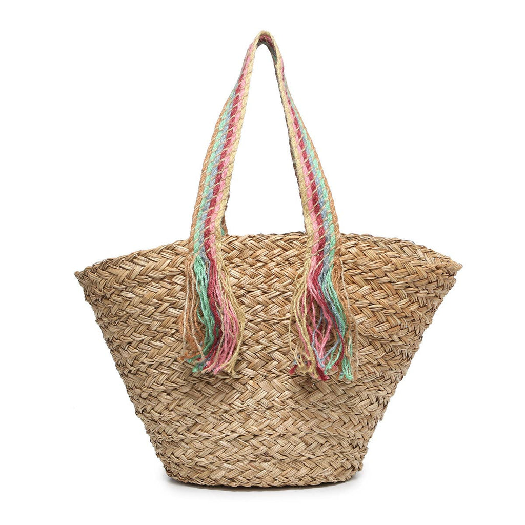 Kit Seagrass Tote w/ Rainbow Braided Handles