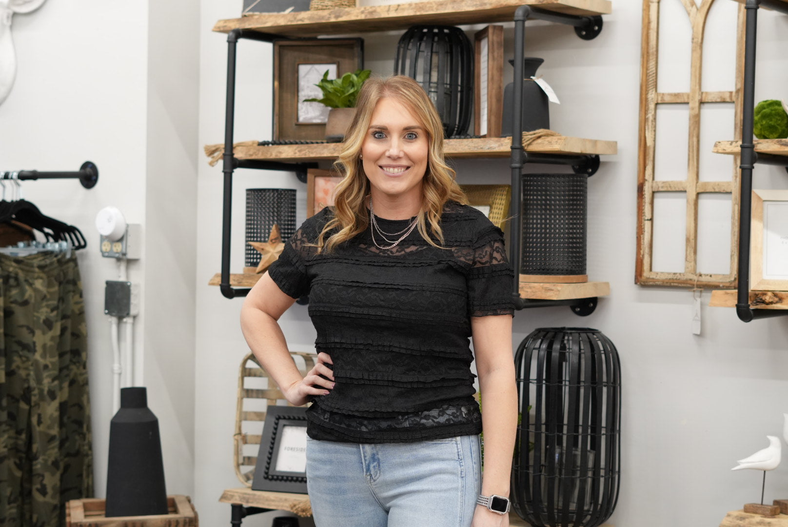 Effortlessly stylish and incredibly comfortable, this stretch knit top features a flattering round neckline and relaxed fit that moves with you throughout your day. The delicate see-through lace panel adds a touch of elegance and visual interest, while the comfort stretch fabric ensures you stay at ease whether you're running errands or enjoying a casual outing. Perfect for layering or wearing on its own, this versatile piece becomes an instant favorite in any wardrobe.